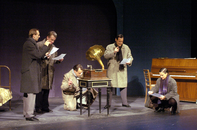 ...In einer Inszenierung des Nordharzer Städtebundtheaters wird mit viel Schwung die Geschichte der ersten deutschen Boygroup, der Comedian Harmonists, erzählt. Vom ungeheizten Dachstübchen in einem Berliner Mietshaus bis auf die Showbühnen der Welt, von den angeblich goldenen Zwanzigern bis hin zum braunen Sumpf, in dem die weltberühmte Gruppe unterging....Regisseur Klaus Seiffert führt die Darsteller....mit leichter Hand und führt sie zu sehenswerten Leistungen....