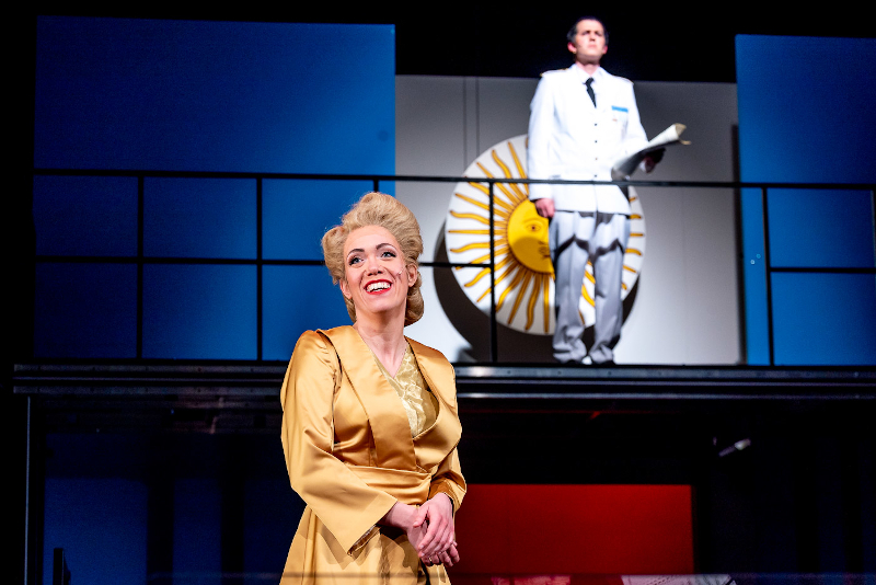 K.S.: Diese Inszenierung entstand noch im Corona-Lockdown unter strengen Auflagen. So durften von den 31 Mitwirkenden immer nur maximal 12 gleichzeitig auf der Bühne sein; alle mussten 1,5 Meter Abstand zueinander einhalten, das Orchester unter der Leitung von Florian Kießling wurde verkleinert etc. Barbara Krott entwarf eine praktikable, auf das Wesentliche konzentrierte Ausstattung und Mario Mariano choreographierte sogar einen erotischen Tango ohne Berührungen. Als die Premiere endlich herauskam (coronabedingt 6 Wochen später als geplant), war die Begeisterung groß!